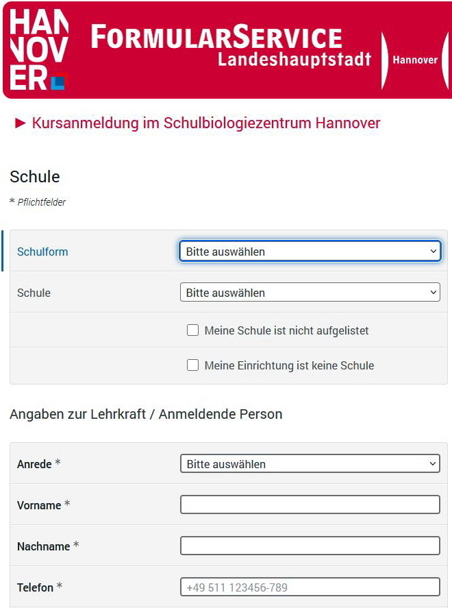 oder per Email: Schulbiologiezentrum.Kurse@Hannover-Stadt.de