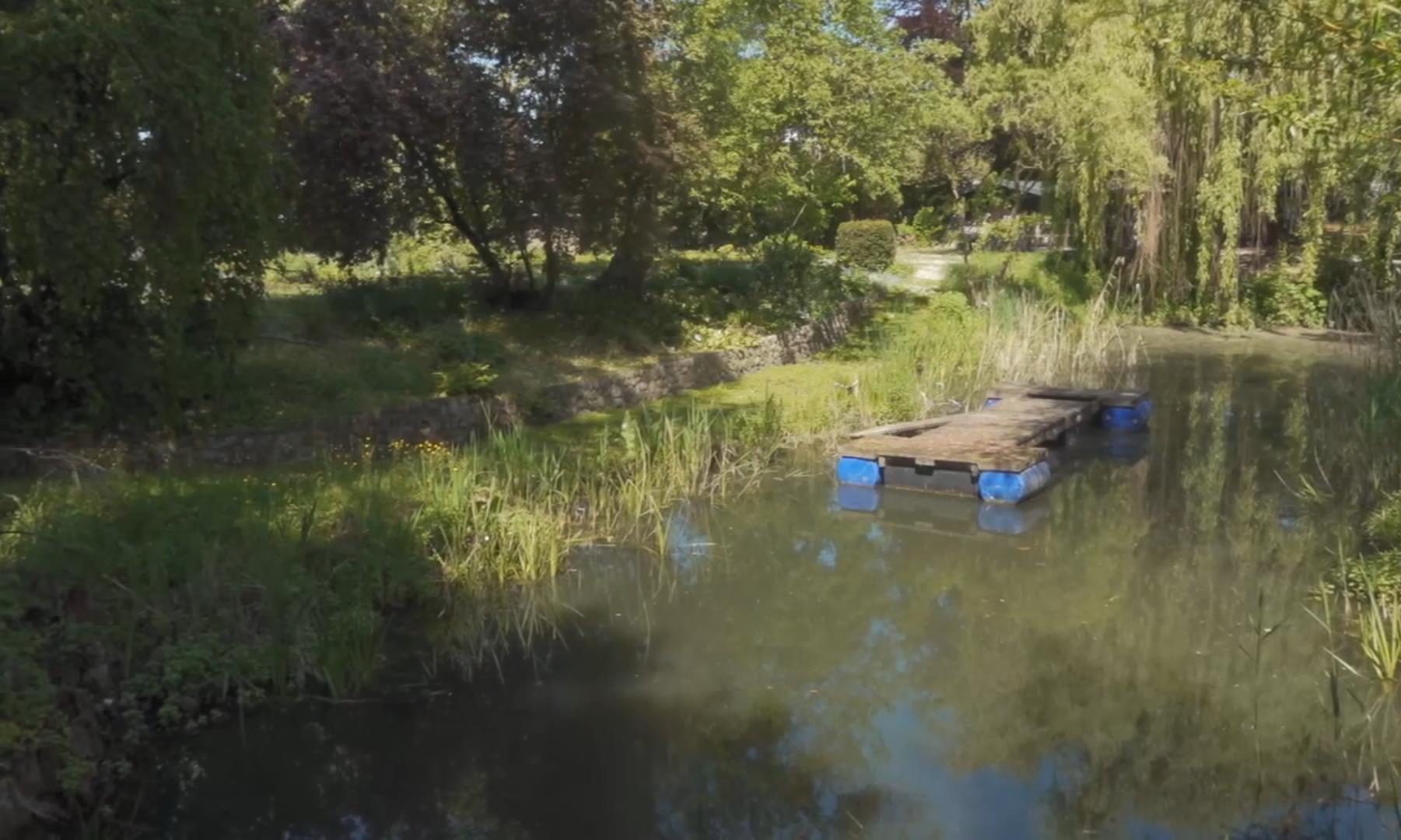 An den Teich grenzen ein Steingarten und ein zur Nachmittagssonne zeigender
