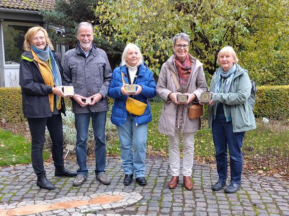 Das Bild zeigt von links nach rechts Elisabeth Pötter (Präsidentin SI Club Hannover2000), Dr. Michael Mainka (1. Vorsitzender Förderverein Apothekergarten), Vera Brand, Dr. Andrea Brand (beide SI Club Hannover2000) und Frau Hannemie Süllow (ehemalige Lehrerin am Schulbiologiezentrum Hannover) bei der symbolischen Spendenübergabe am 29. Oktober 2025. Botanik der Weihnachtsplätzchen - oder "Mythen in Tüten"