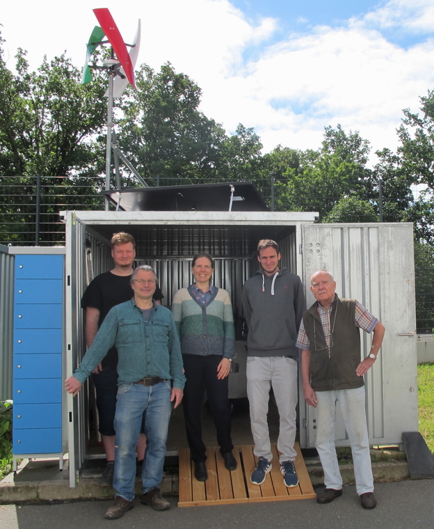 dem hinteren Schulhof aufgestellten Containers und ein Windgenerator versorgen